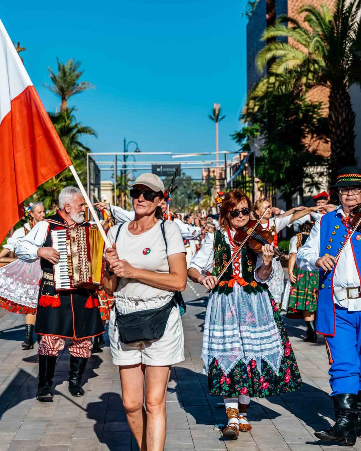 An iconic moment of the festival, the parade transforms the streets into a spectacular open-air celebration. Folklore groups march in traditional costumes, accompanied by lively rhythms and festive dances. This colorful procession creates a direct connection between the artists and the audience, celebrating unity in diversity in the heart of the city.